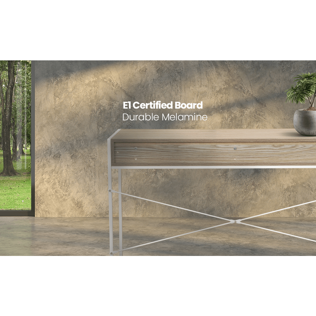 Palatial Everfurn Desk with Two Drawers and Storage Cavity , Powder Coated Steel Frame