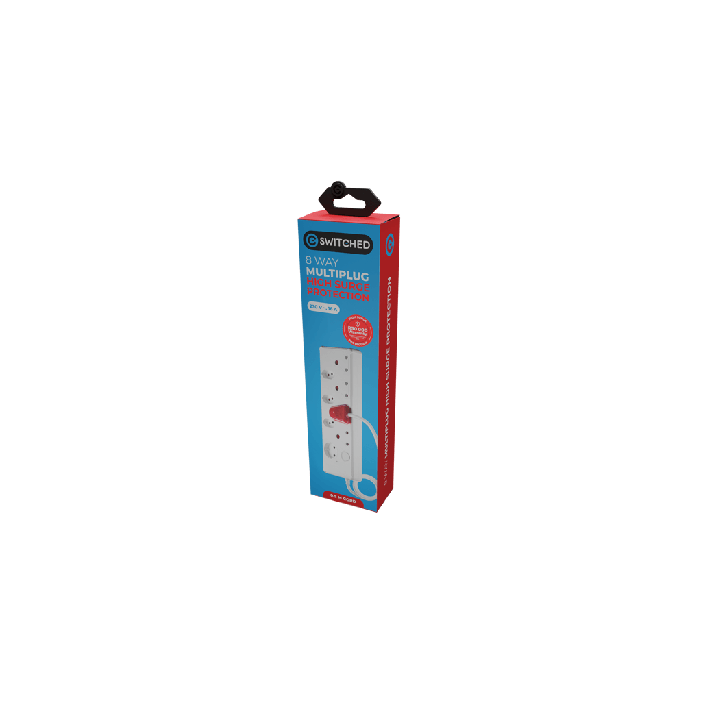 SWITCHED 8-way High Surge Multiplug 0.5m - White